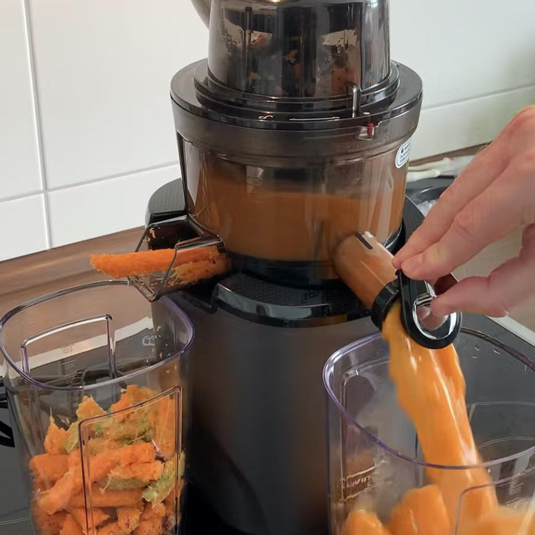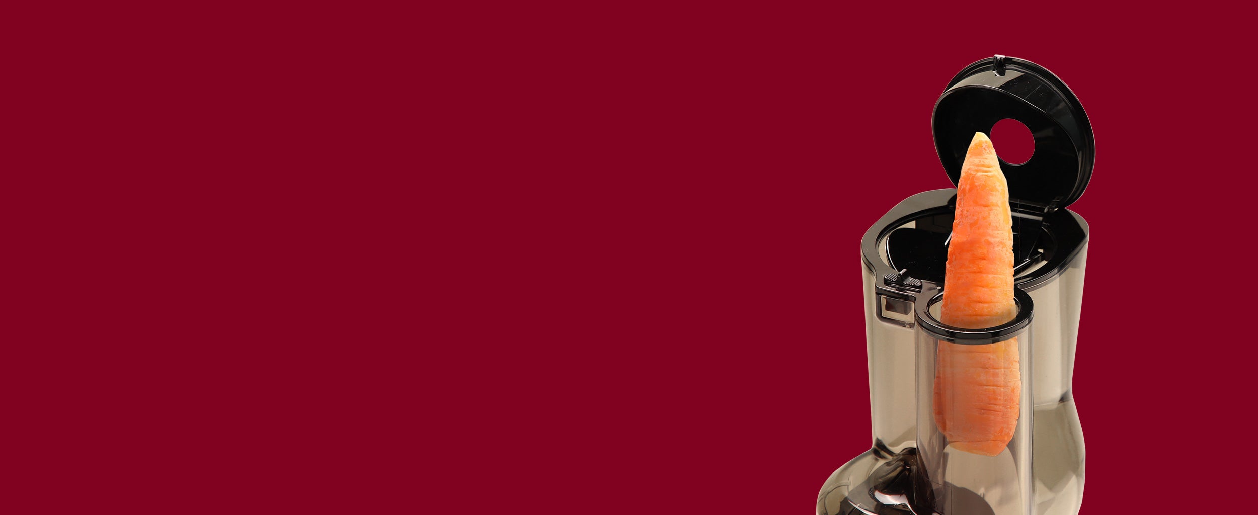 43mm-wide dedicated feeding tube, equipped with an automatic smart cutting function for long fibrous vegetables & fruits like celery, carrot and cucumber