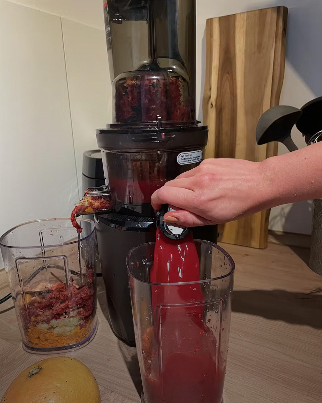 REVO830 with upgraded screw and juicing mechanism provides silky juice with less pulp content.