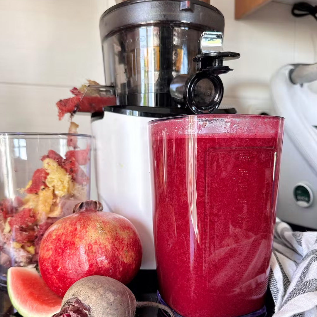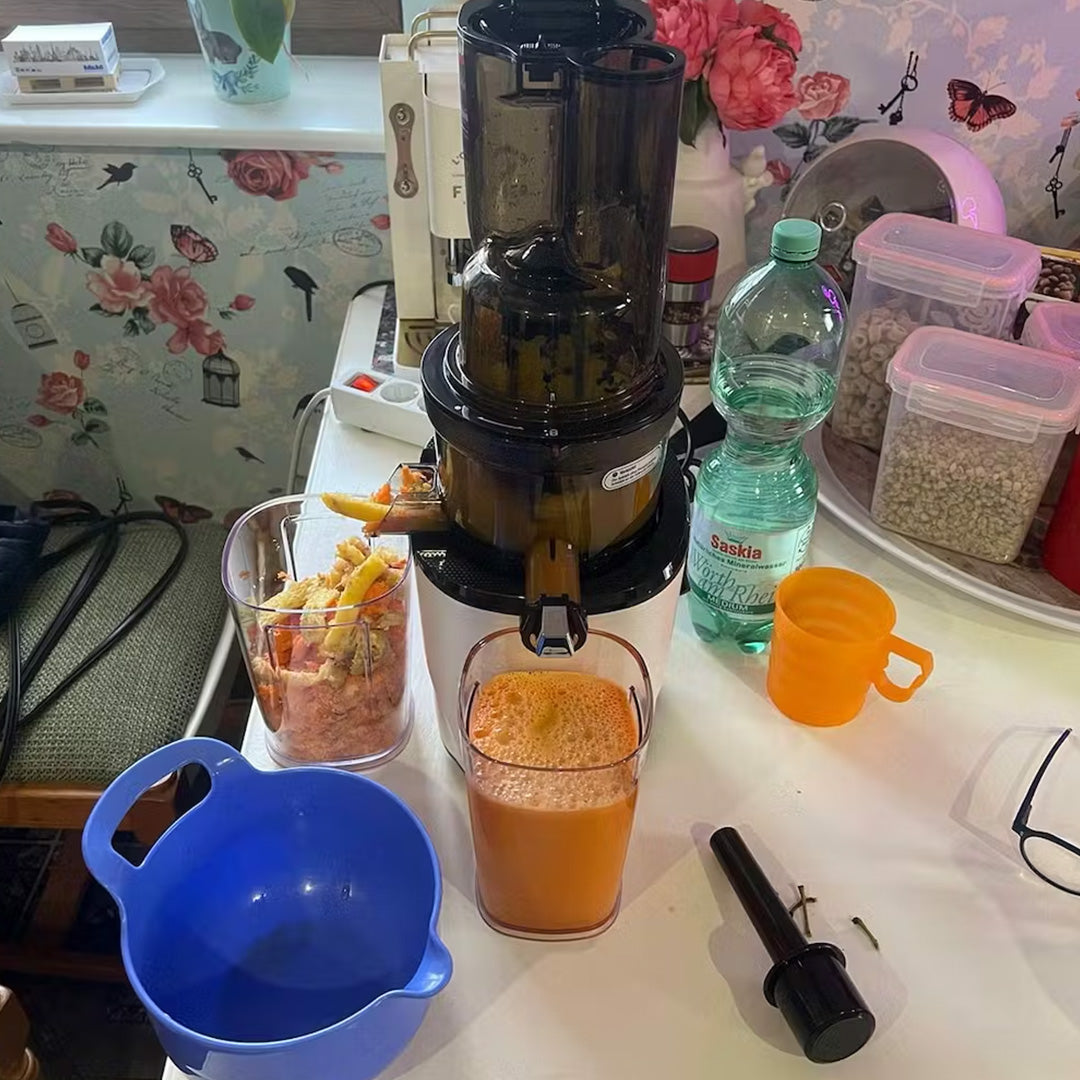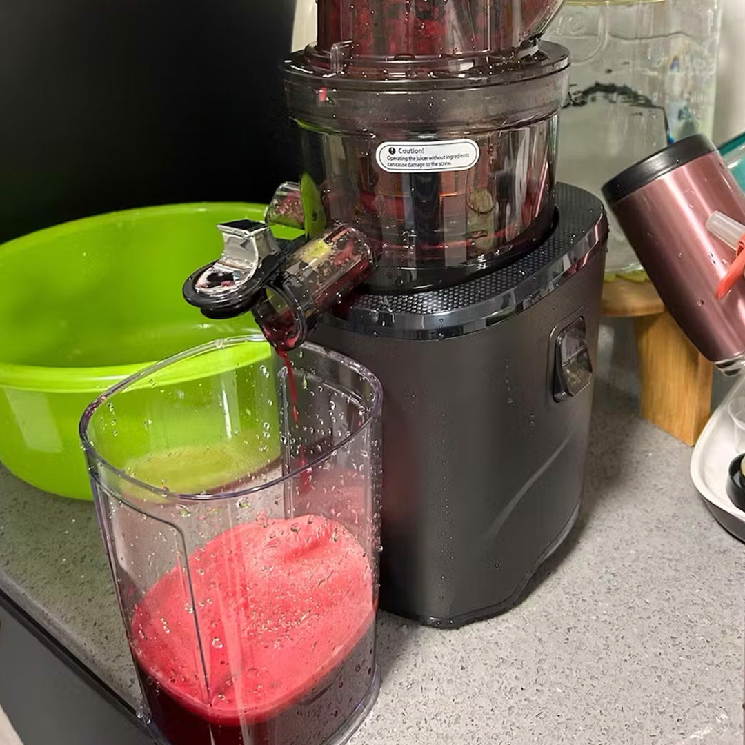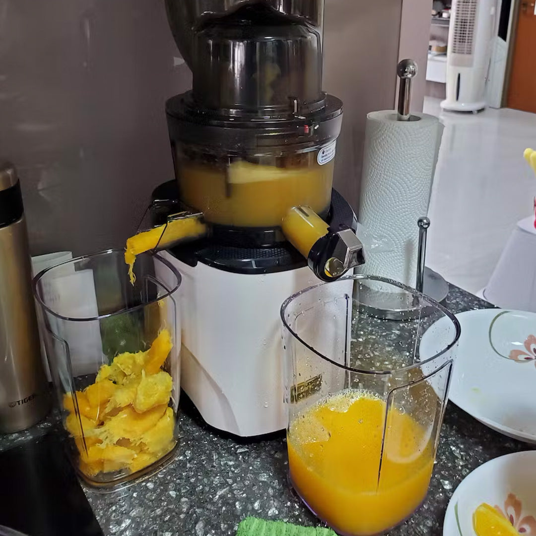 Upgraded screw and juicing mechanism for silky juice with less pulp.