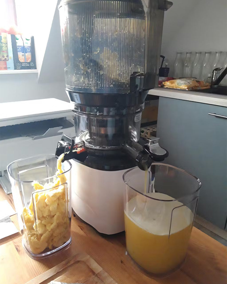 The juicer's wider pulp outlet makes cleaning more convenient compared to previous models.