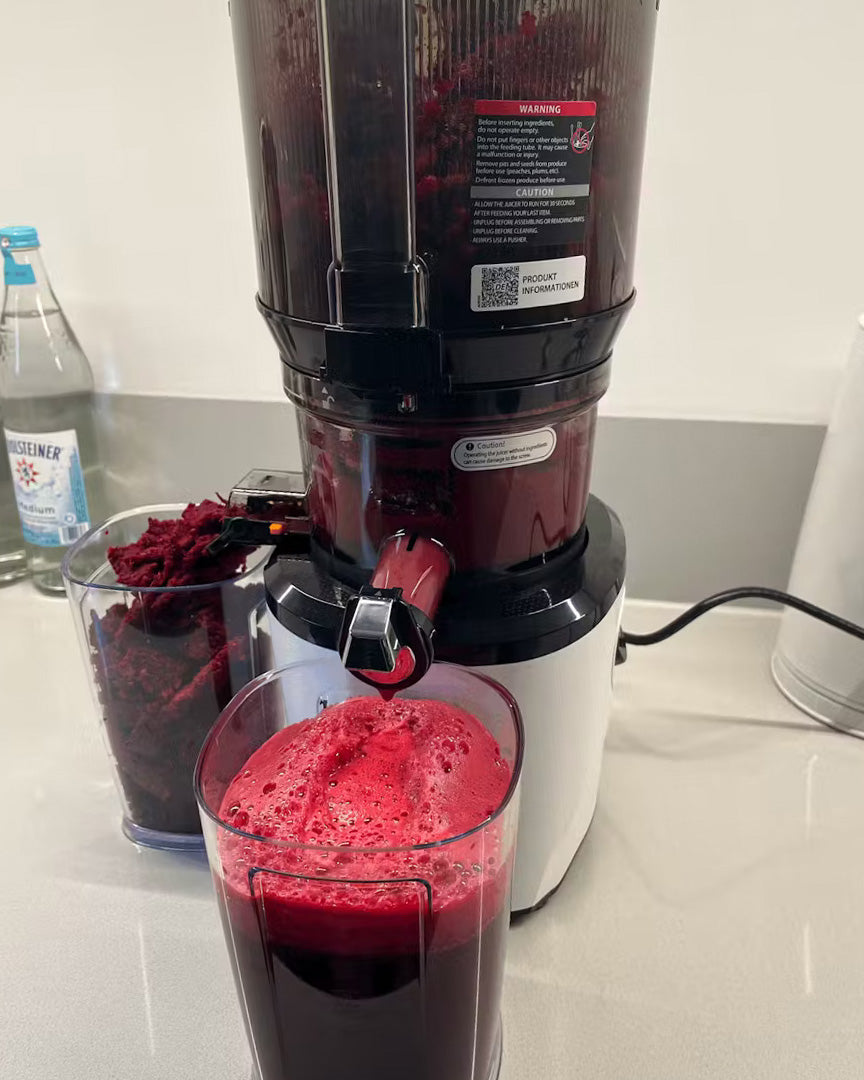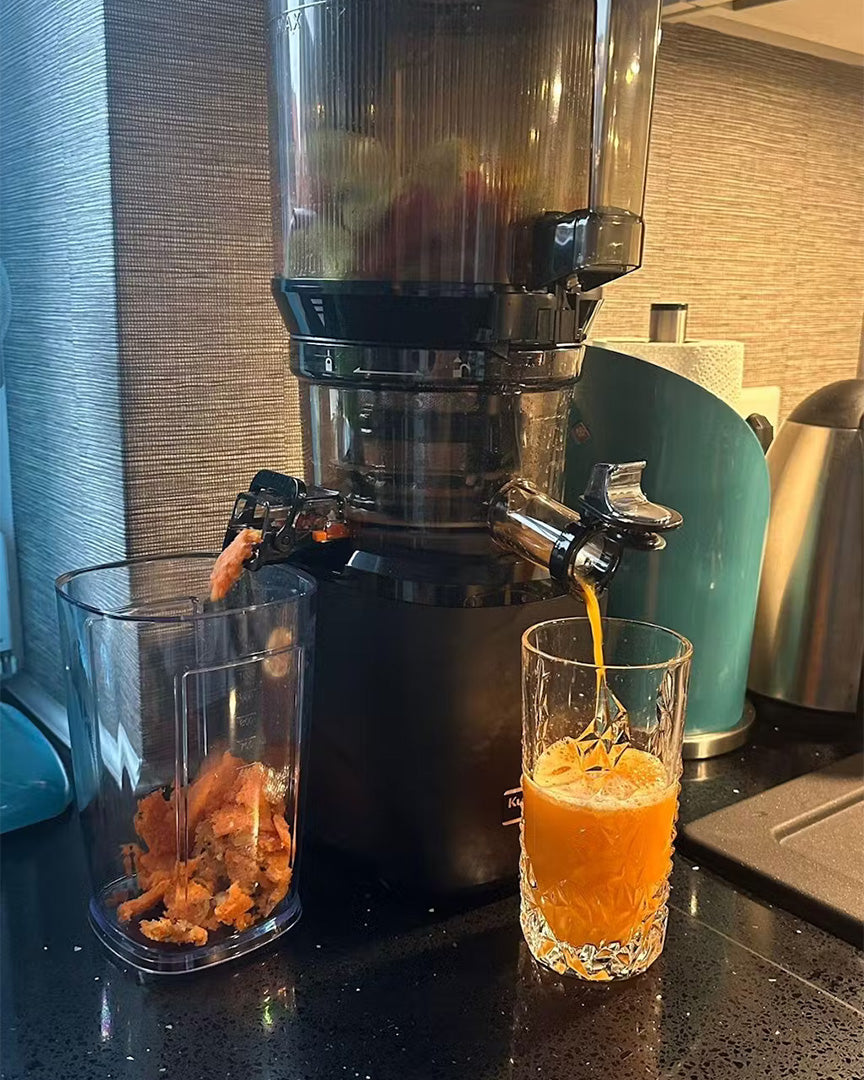 Auto cutting, upgraded screw for silky juice, and a smart cutting technique for easier juicing and no clogging.