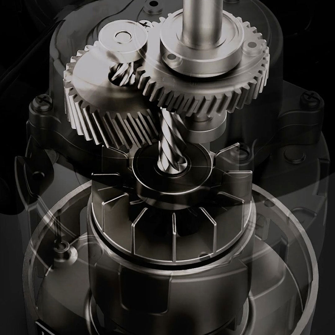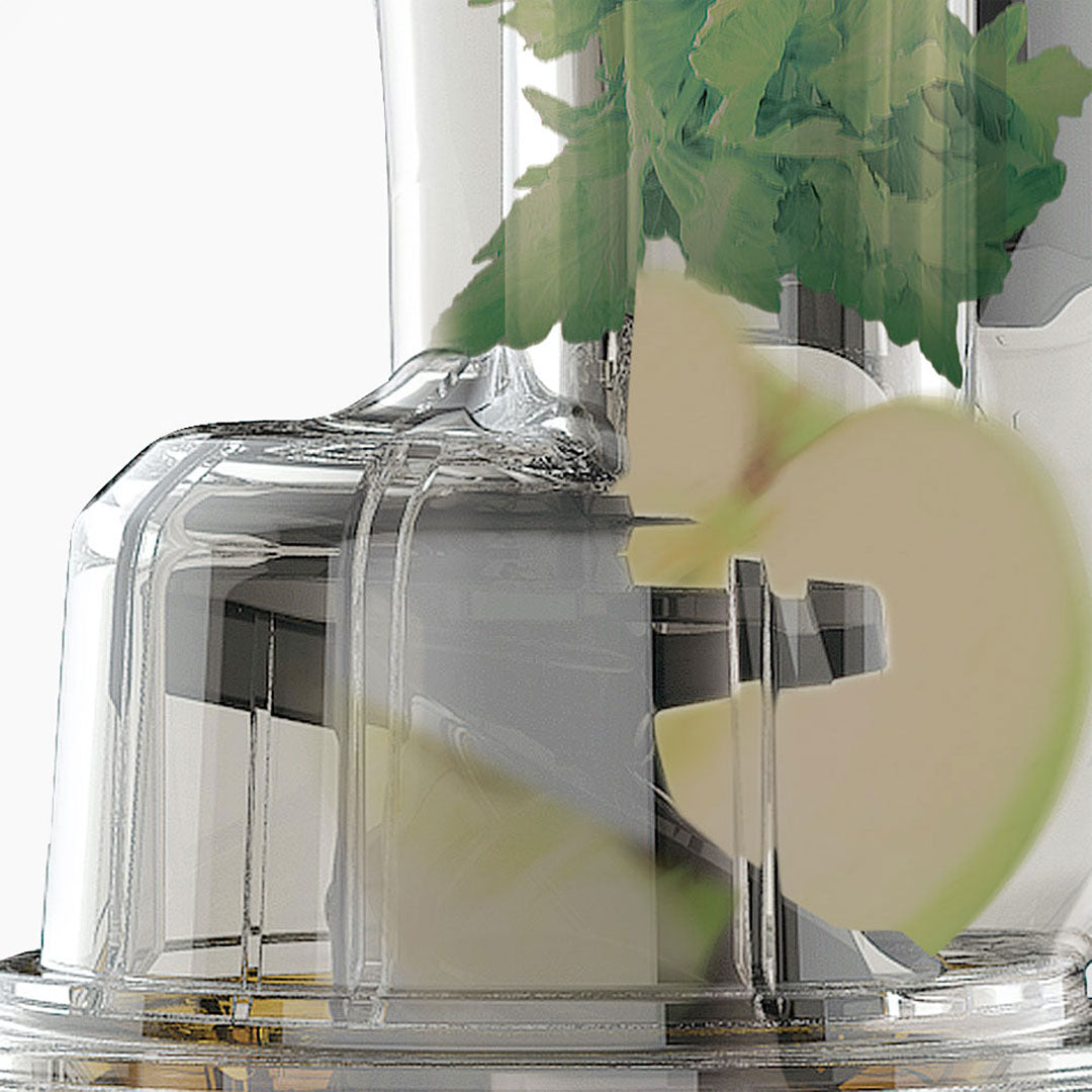 fruits and vegetables to extract the juice. The auger inside the machine rotates at about 52 rpm (repetitions per minute)