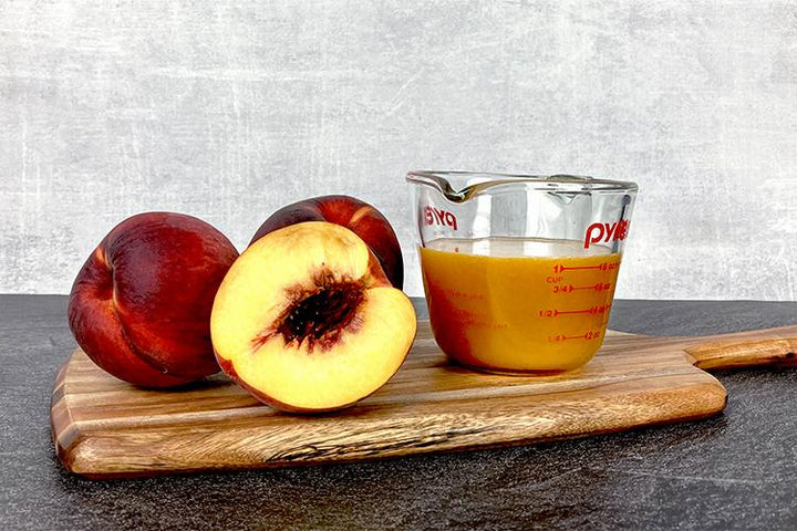 2 ½ peaches(pits removed) = 1 cup of peach juice.