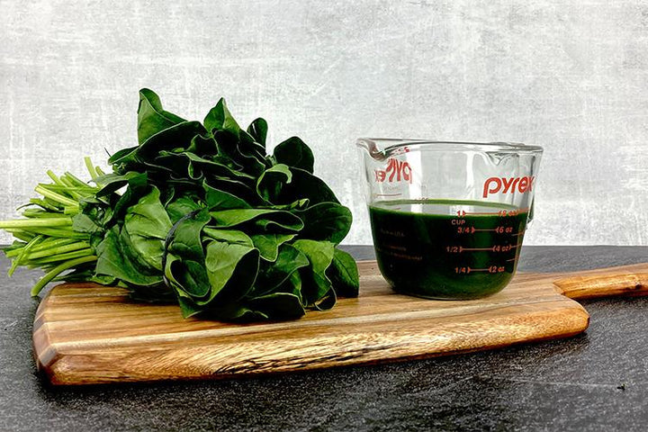 1 ½ bundlesof spinach = 1 cup of spinach juice.