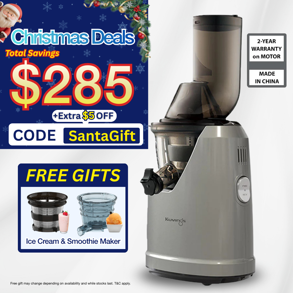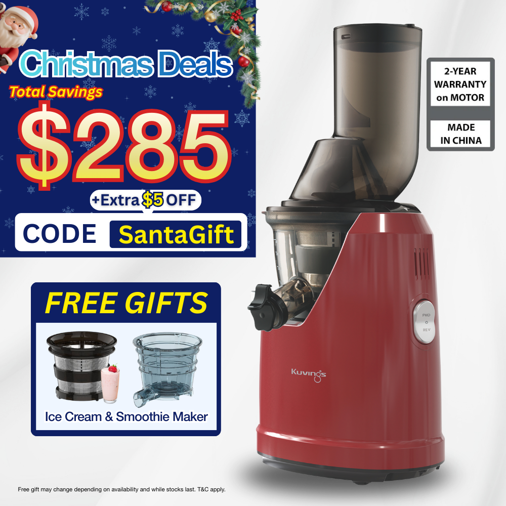 Kuvings Slow Juicers are masticating slow juicers equipped with a wide hopper or feed chute to accommodate whole ingredients. Less chopping is required, saving you time and energy. To compare commercial slow juicers (juicers for business), click here.