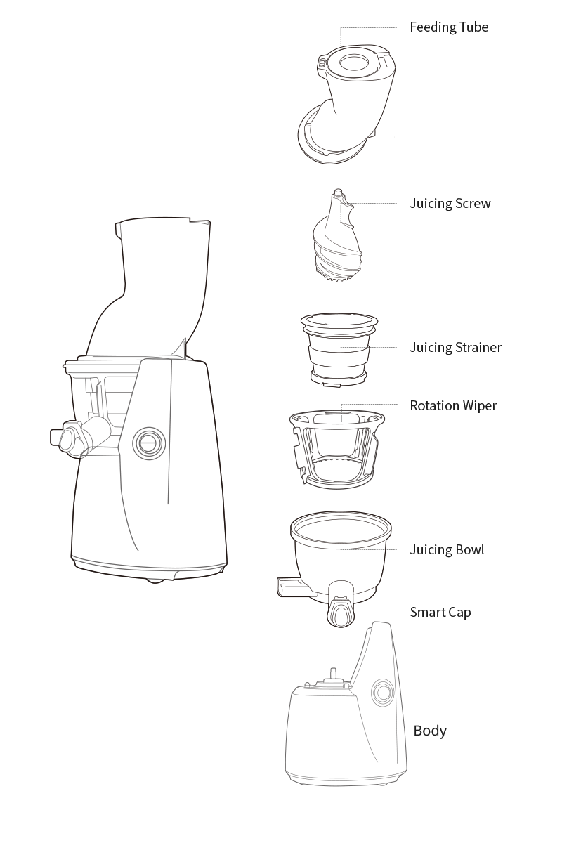 The 82mm feeding chute, which is wider than the existing models can let putting larger ingredients without cutting, leading to fast juicing.